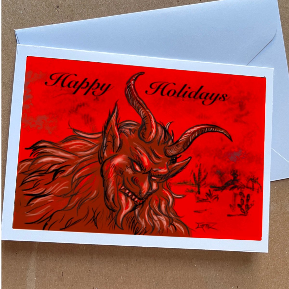 Desert Krampus design on a blank greeting card that you can write your own message. Use if for any occasion. Printed on 100lb card stock and comes with envelope.