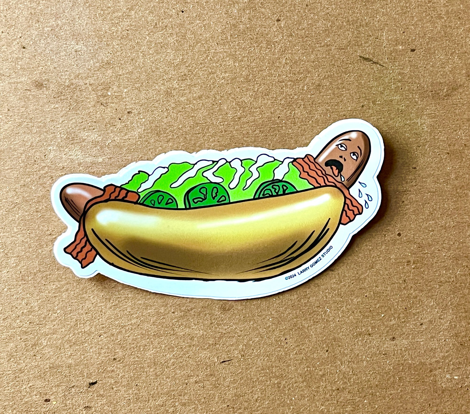 Sonoran Hot Dog. First of a potential series of designs that are inspired by life in the Sonoran desert of Southern Arizona, specifically Tucson. Sticker is aproximately 4.25” x 2”.